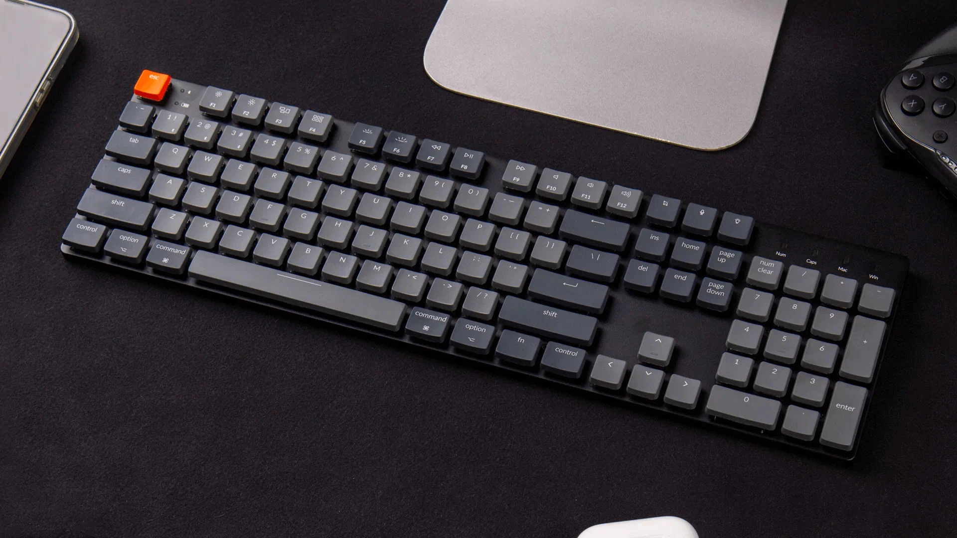 A versatile wireless full-size keyboard that supports multiple operating systems and comes with hot-swappable keys for customization.